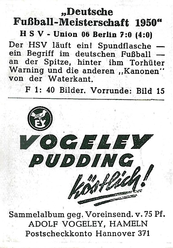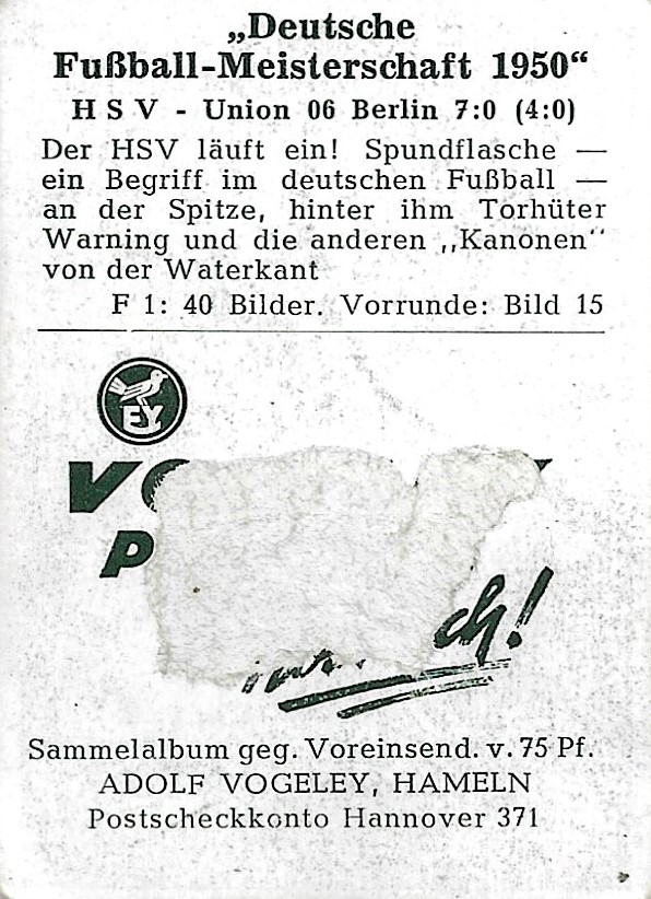 Vogeley Sammelbilder 1949/50 "Deutsche Fußball - Meisterschaften 1950" |